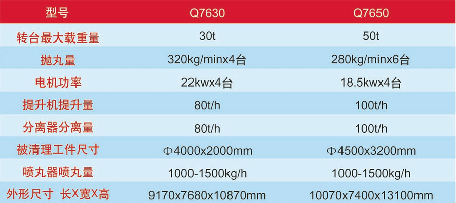 台车式抛喷丸清理机适用于大中型钢结构件和铸件的表面清理和强化,亦适用于厚钢坯的表面除锈及表面氧化皮的清理,广泛用于铸造、锻压、机械钢铁等行业。台车不但可承载工件而且可自转,工件可得到全面有效的清理,只需一个清理室,对于结构比较复杂的工件,抛丸后的死角可通过手动喷丸补充清理,使工件清理彻底。